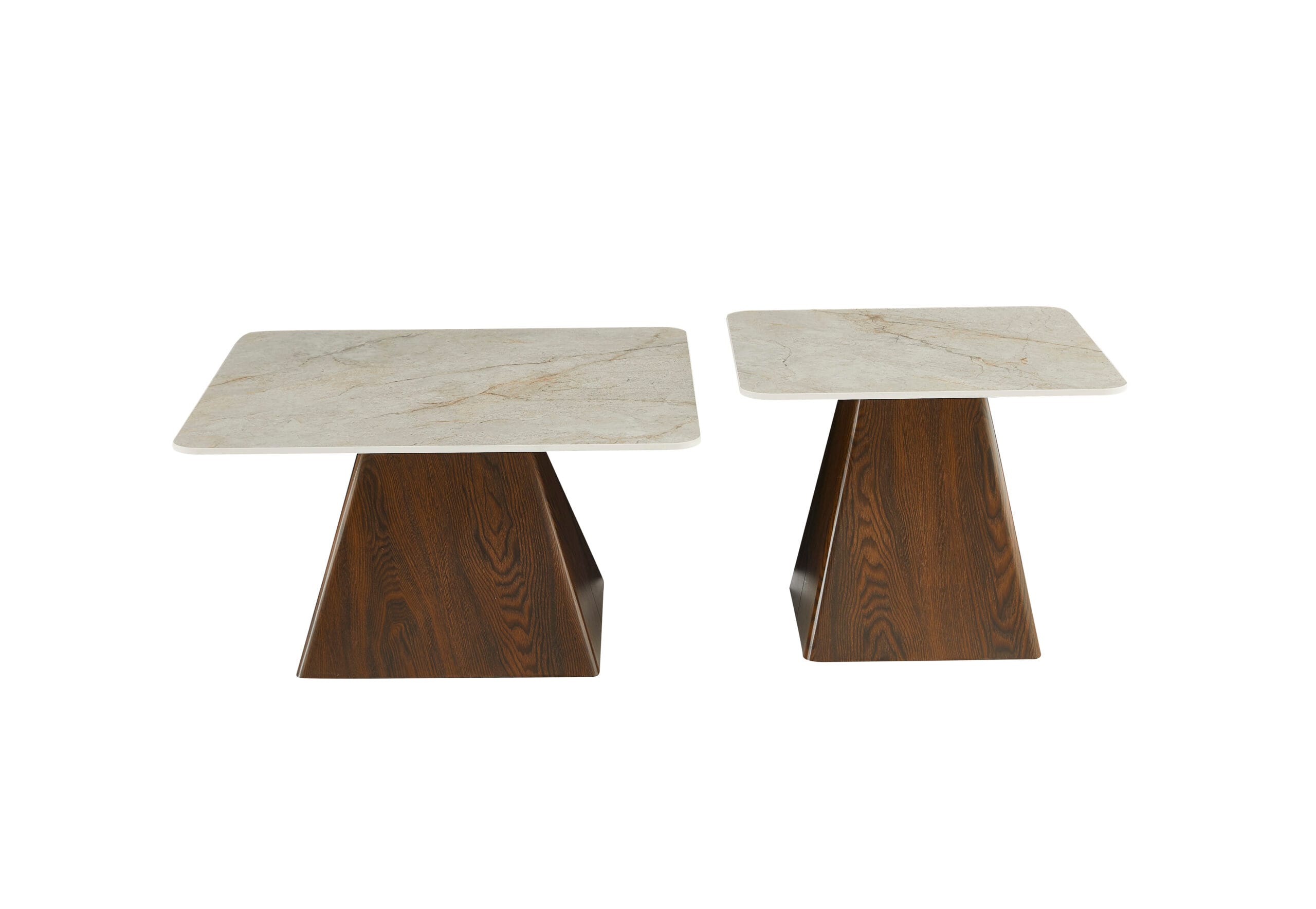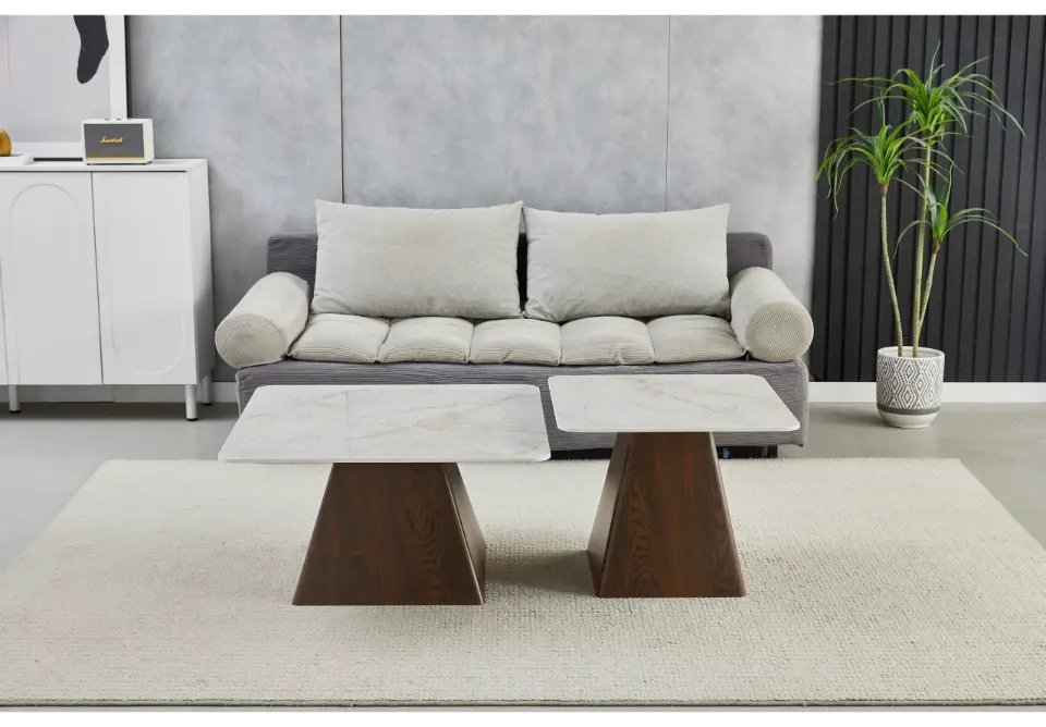 Costa 2u1 klub stolić s pločom od sinteriranog kamena i metalnim postoljem s premazom u drvenom dekoru, savršen za kombiniranje u moderno uređenim interijerima.
