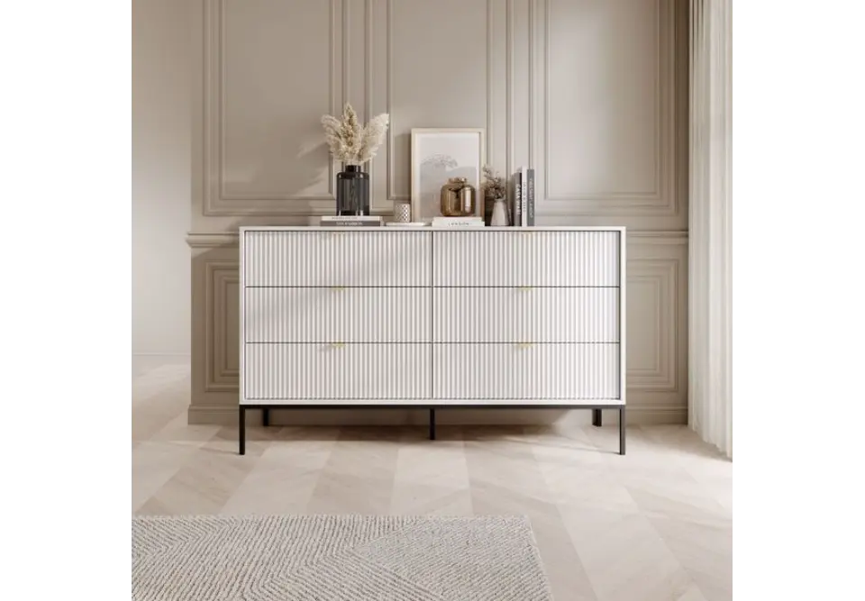Kolekcija uključuje komode različitih veličina, klub stolić, noćni ormarić, toaletni stolić i TV ormarić.